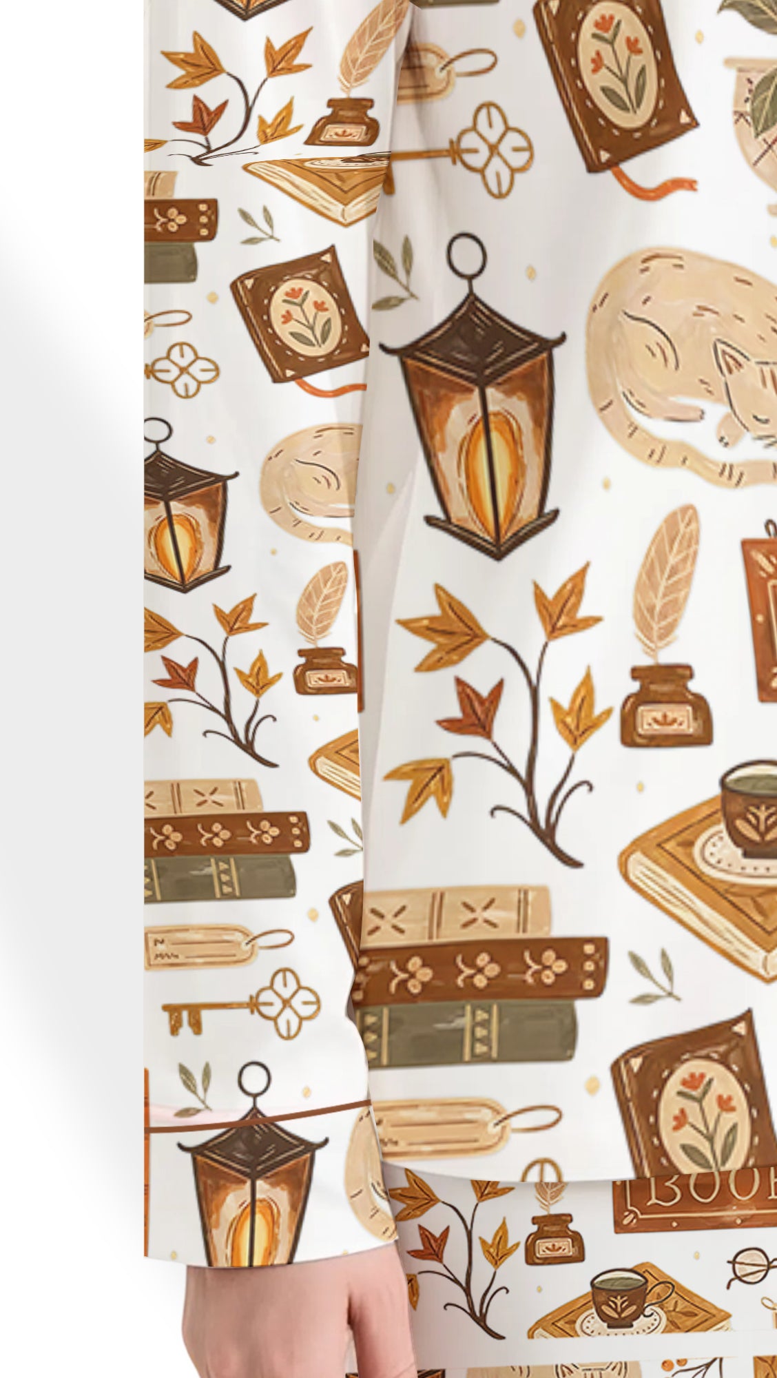 Made with soft satin and featuring a cozy fall-inspired design, this long sleeve PJ set is perfect for autumn reading nights, lounging at home, or gifting to any book lover.