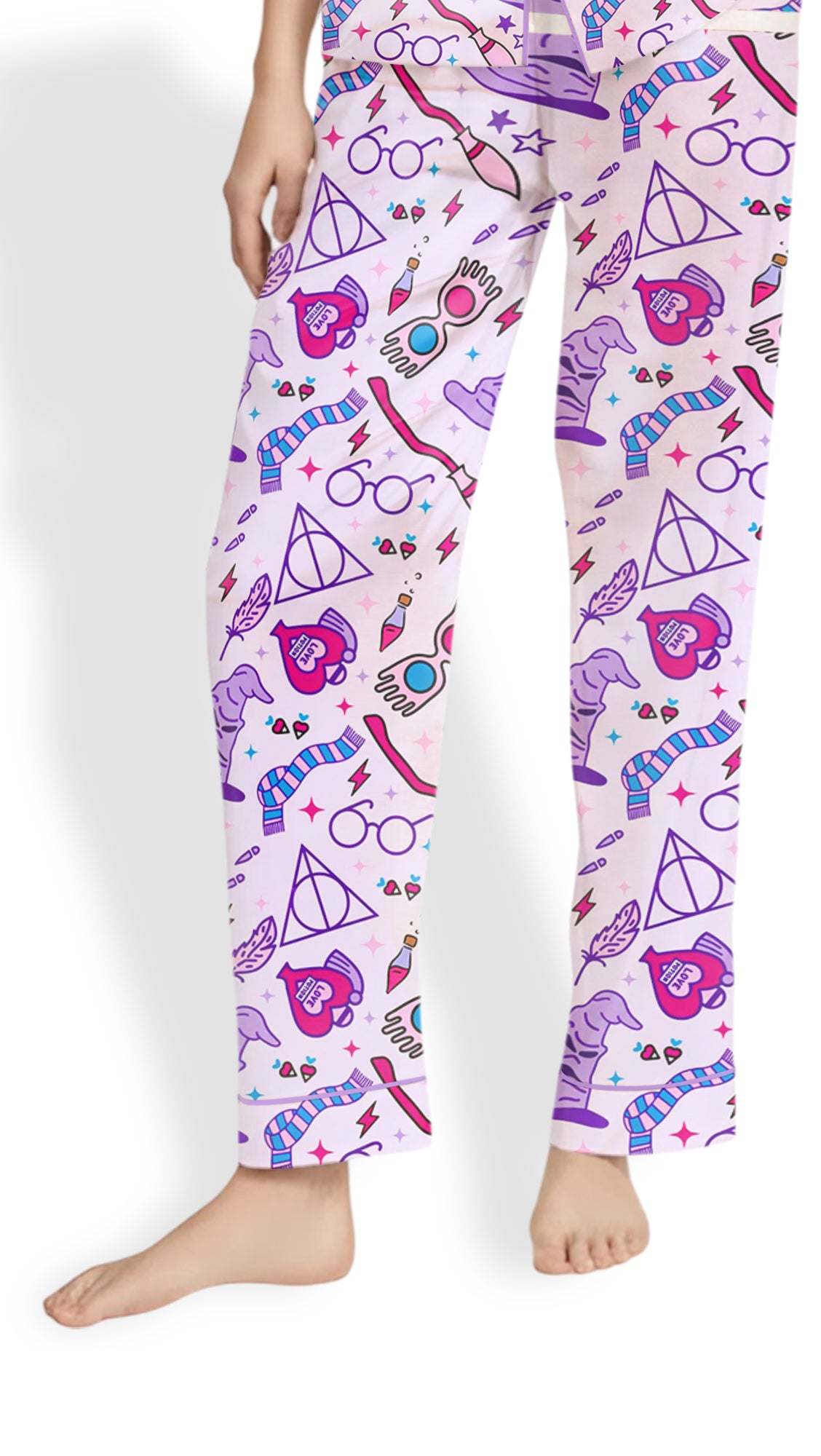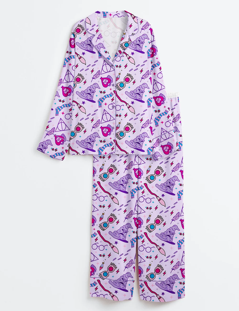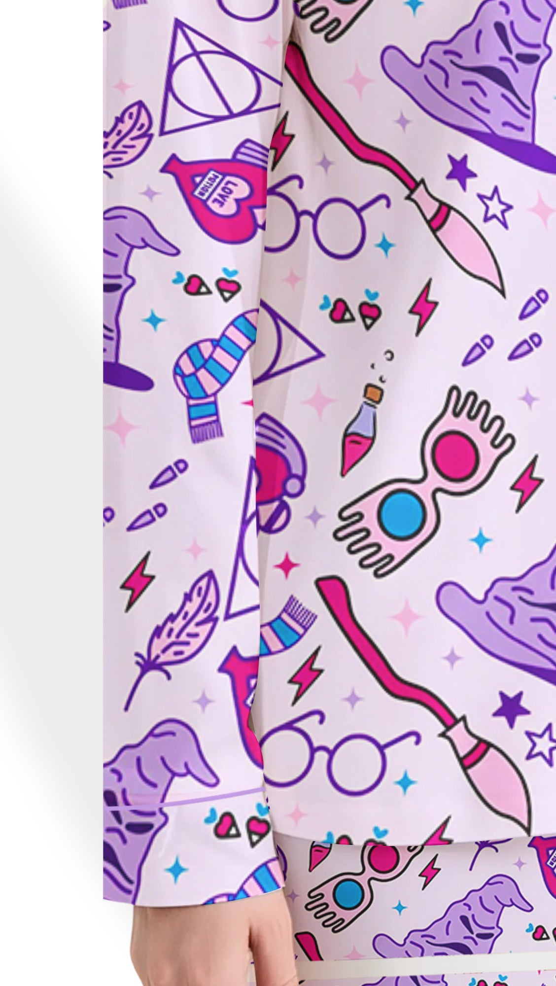 Featuring a silky smooth finish and a playful witchy design, this long sleeve pajama set is perfect for cozy nights, Halloween parties, or seasonal lounging.