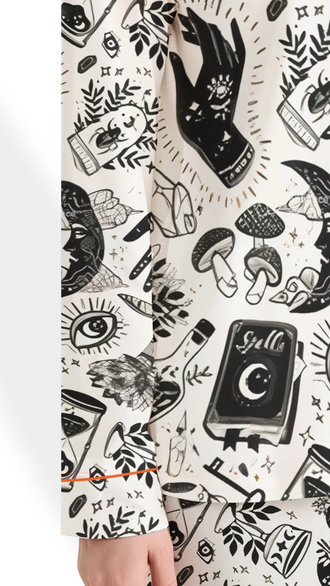 This Women’s Witchy Things Pajama Set blends comfort with festive style, featuring a striking black and white Halloween cat design on smooth satin fabric.